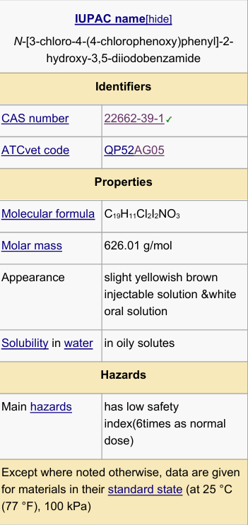 RAFOXANIDE for veterinary use on CATTLE, SHEEP, GOATS
