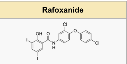 Rafoxanide is a veteran, narrow-spectrum flukicide and nematicide. It is still